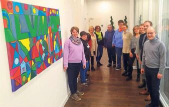Ein dreiteiliges Gemälde der Kreativgruppe von "fuer-ein-ander" schmückt seit Donnerstag die Wände der LVM-Geschäftsstelle Kleinekemper & Buth in Beckum. HIntergrund ist eine Spende an den Verein für körper- und mehrfachbehinderte Menschen Kreis Warendorf.